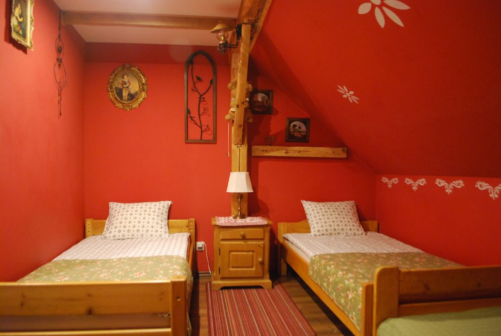 Do dyspozycji gości jest całe piętro z osobnym wejściem. Znajdują się tam 2 pokoje – 3 i 4 osobowe (z możliwością dostawki) oraz łazienka i wpełni wyposażona kuchnia, wspólne dla obu pokoi. W każdym pokoju znajduje się także telewizor oraz radio.